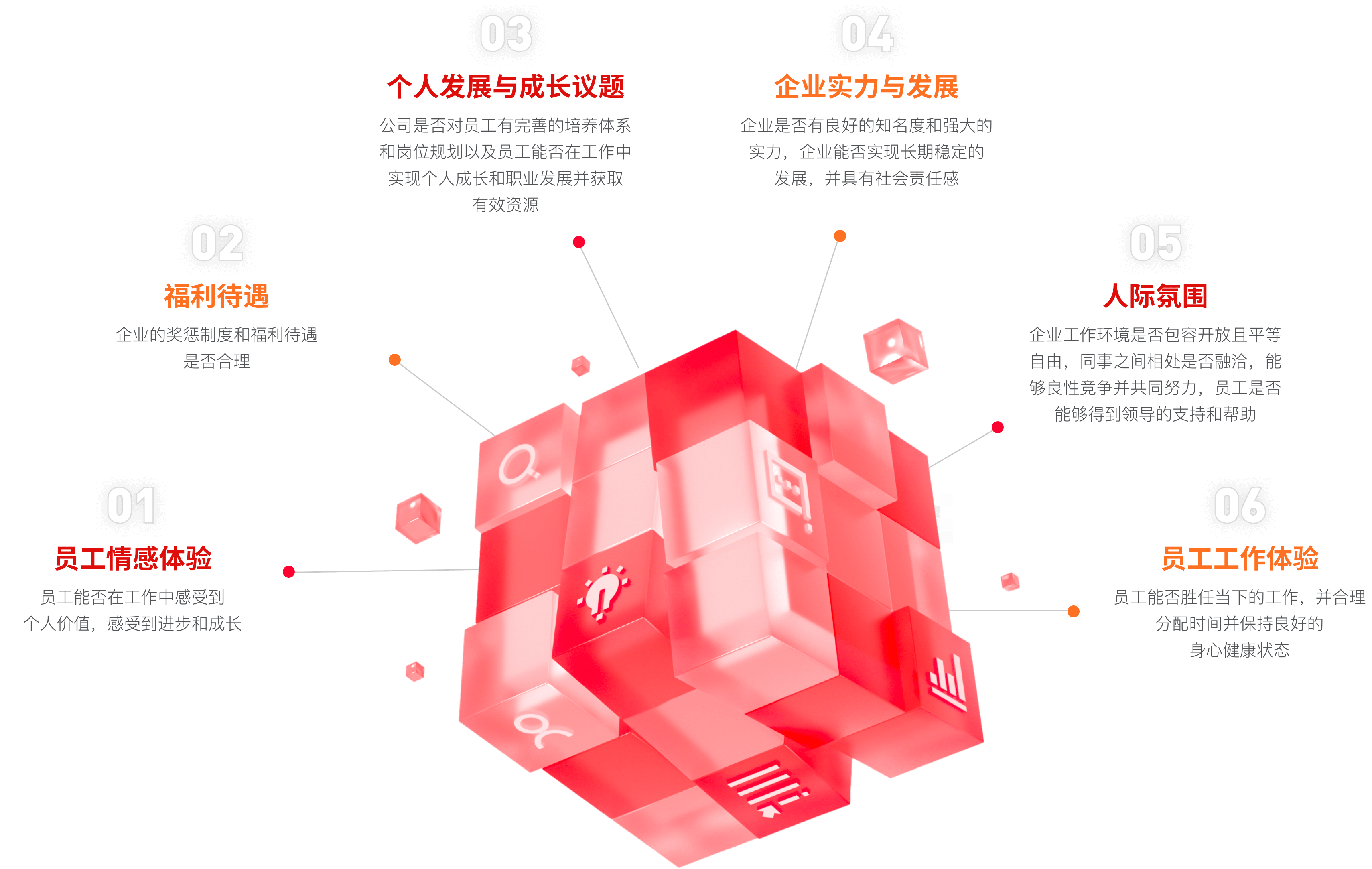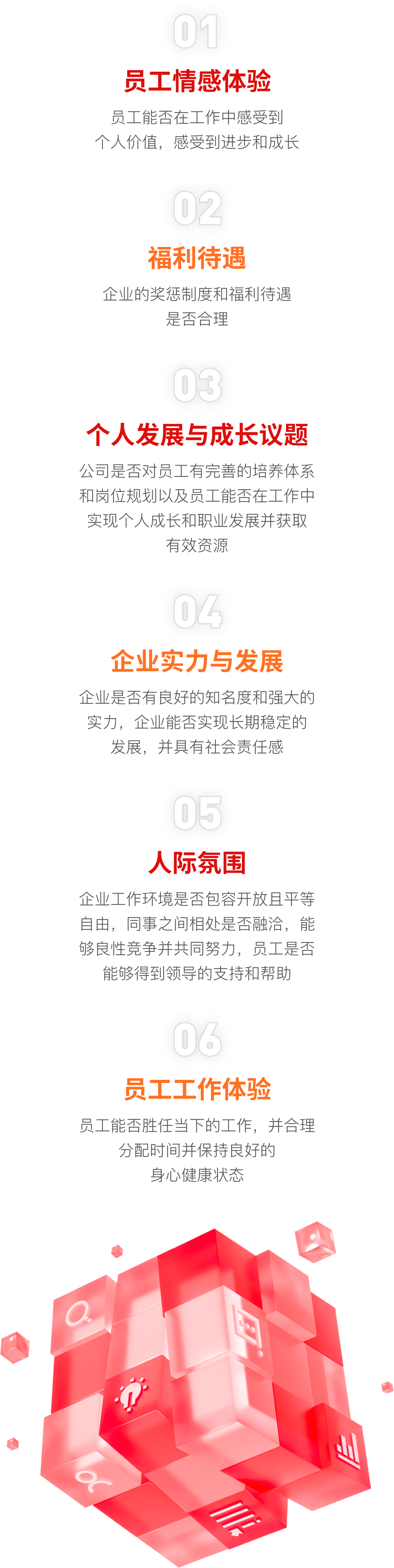 幸福企业测试依据员工心中衡量幸福企业的六大维度,并顺利获得深入访谈企业员工,独家开发幸福企业评定量表,用以评定员工在企业中的幸福要素及其幸福水平。测评结果将有效帮助企业提升员工的工作满意度。